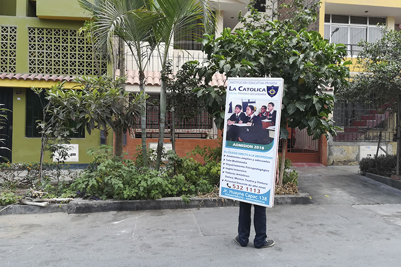 Recorrido por las zonas de mayor afluencia, haciendo entrega de volantes. Este panel es luminoso, para horarios nocturnos